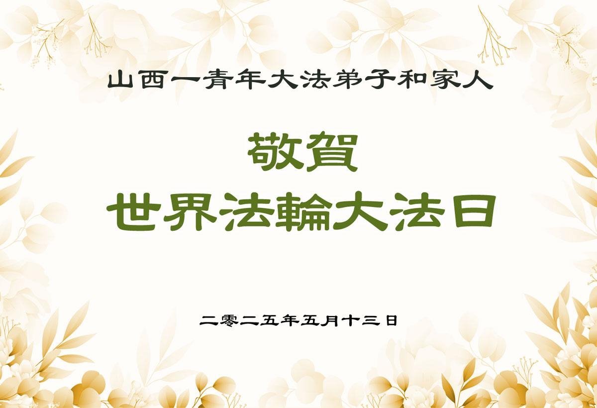 感恩师尊!感恩大法! 山西一名大法弟子敬上 二零二五年五月五日 山西省晋城市一家大法弟子恭贺世界法轮大法日暨慈悲伟大的师尊生日快乐!