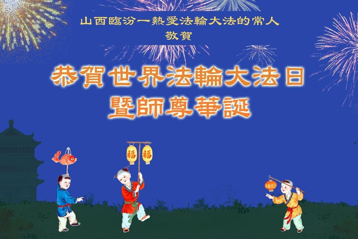 山西省临汾大法弟子恭贺世界法轮大法日!恭祝师父生日快乐!