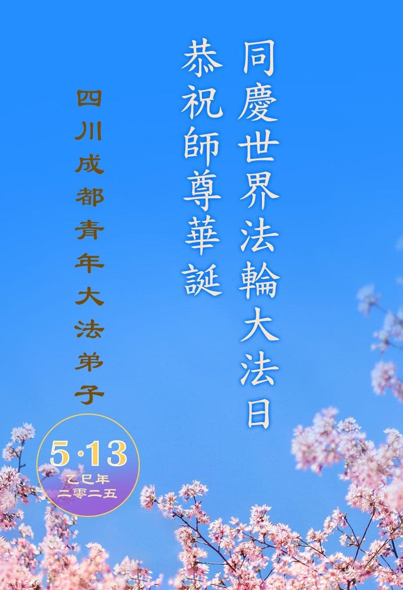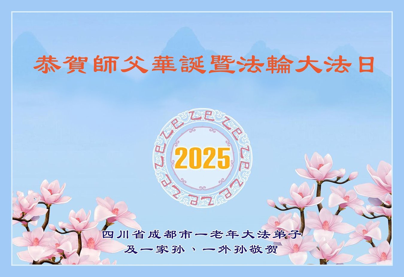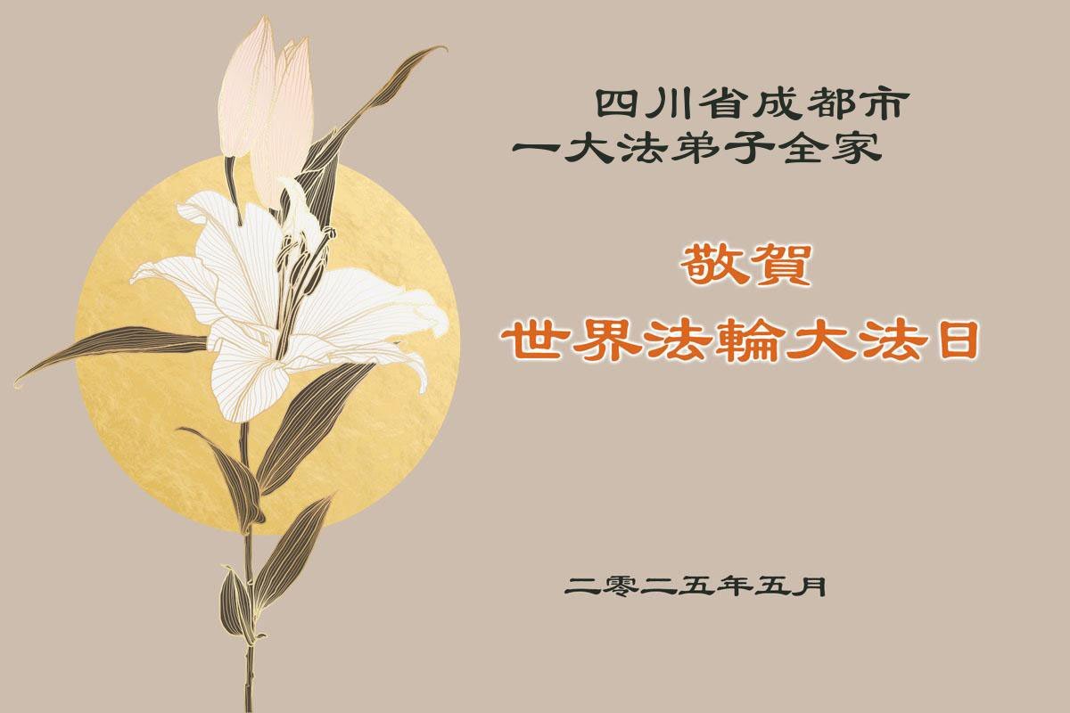 【明慧网二零二五年五月十二日】 四川省成都市一大法弟子全家恭贺世界法轮大法日暨伟大慈悲的师尊生日快乐!
