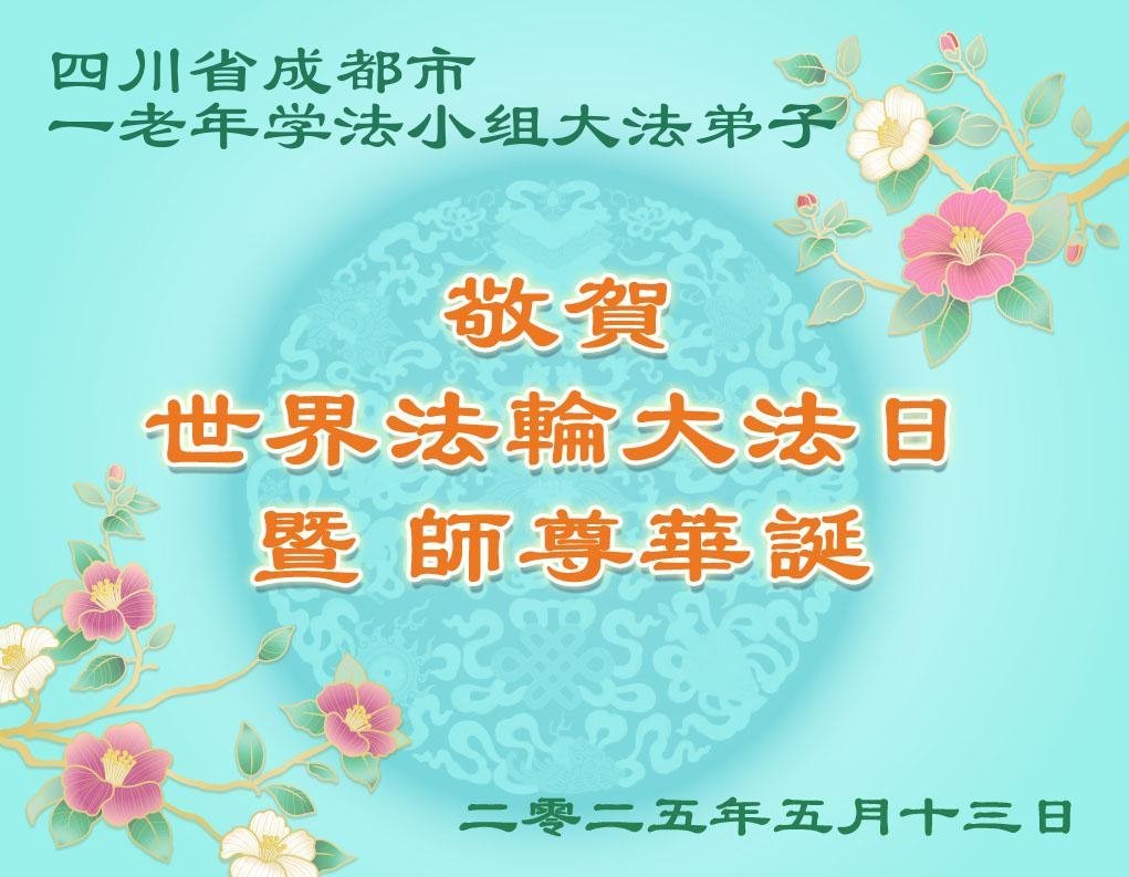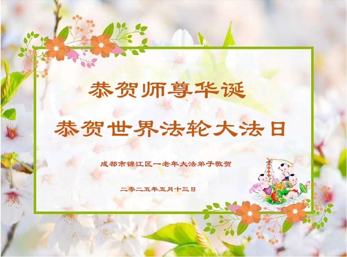 四川省成都市锦江区一老年大法弟子恭贺师尊华诞暨世界法轮大法日!