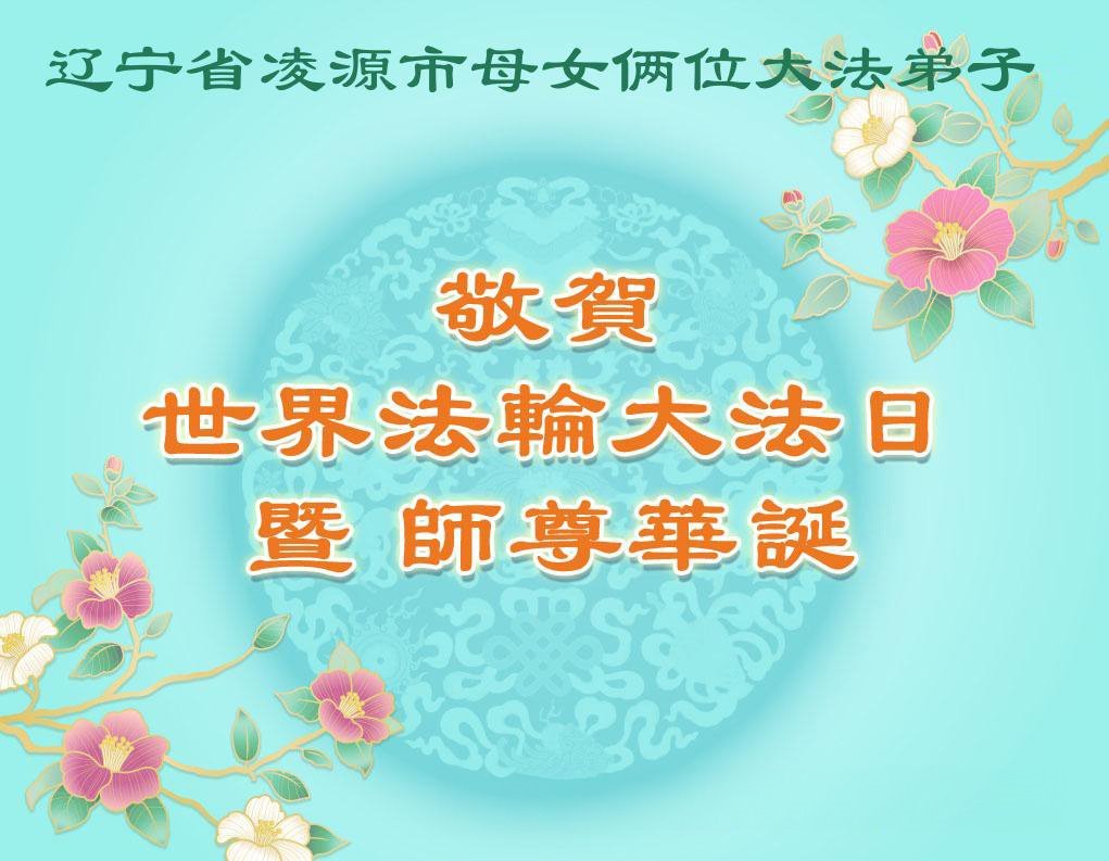 在世界法轮大法日来临之际,我们学法小组全体大法弟子首先恭祝师父生日快乐!感谢师父的慈悲苦度,在这正法的最后时刻,我们一定遵循师父的教诲,做好三件事,放下人心,向内找,精進实修,兑现誓约,完成我们的使命,圆满跟师父回家。 辽宁省北票市一学法小组大法弟子敬上 二零二五年五月二日 辽宁省朝阳市凌源市母女俩大法弟子及全家人恭贺世界法轮大法日!恭祝师尊生日快乐!