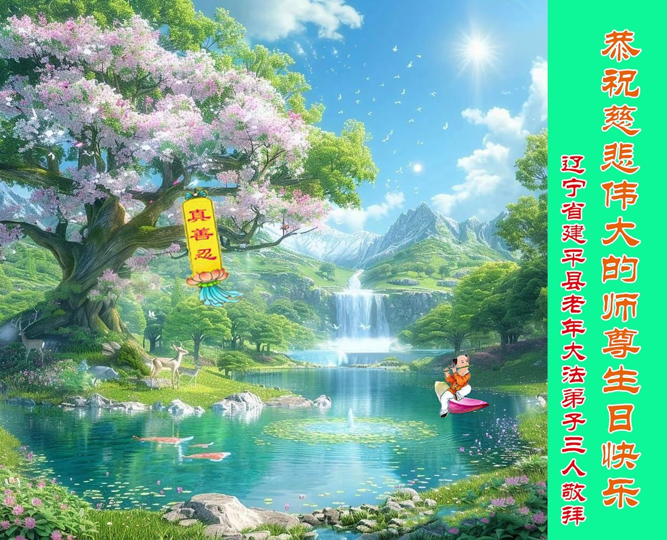 恭祝师父生日快乐!感恩师父慈悲苦度!弟子一定听师父的话,做好三件事,跟师父回家。 辽宁省朝阳市北票一家大法弟子敬上 二零二五年五月四日 辽宁省朝阳市建平县老年大法弟子三人恭贺世界法轮大法日!恭祝慈悲伟大的师尊生日快乐!