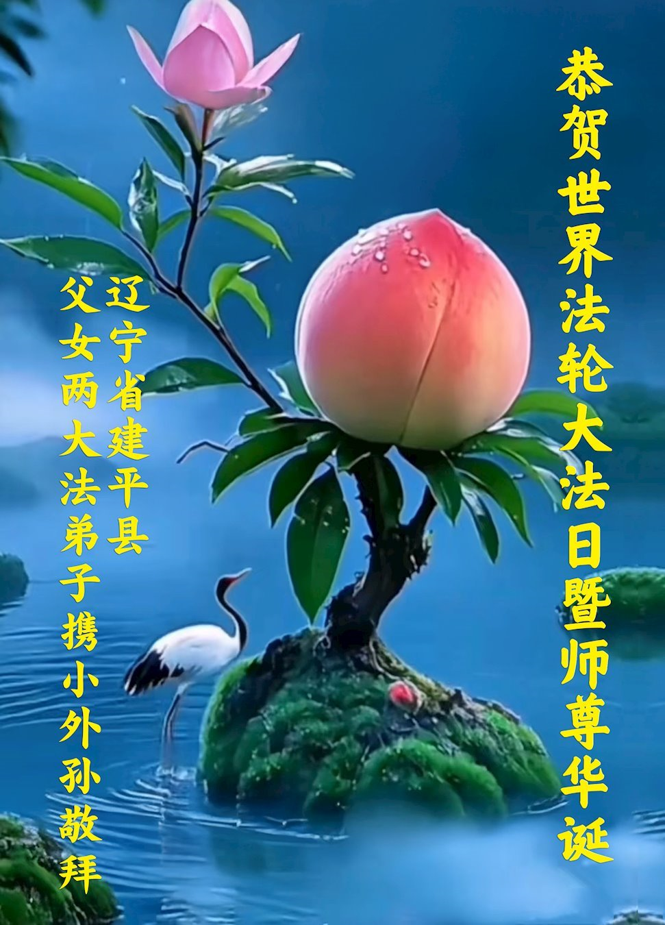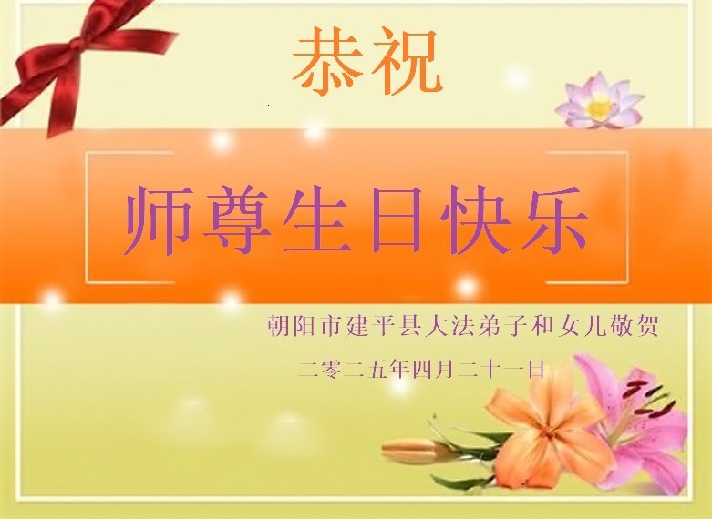 同庆同颂同贺世界法轮大法日! 恭祝慈悲伟大的师尊生日快乐! 师尊您辛苦了!感恩师尊的慈悲救度与保护! 辽宁省凌源市母女俩大法弟子及全家人敬上 2025年4月20日 辽宁省朝阳市建平县大法弟子父女两人恭贺世界法轮大法日暨师父华诞!