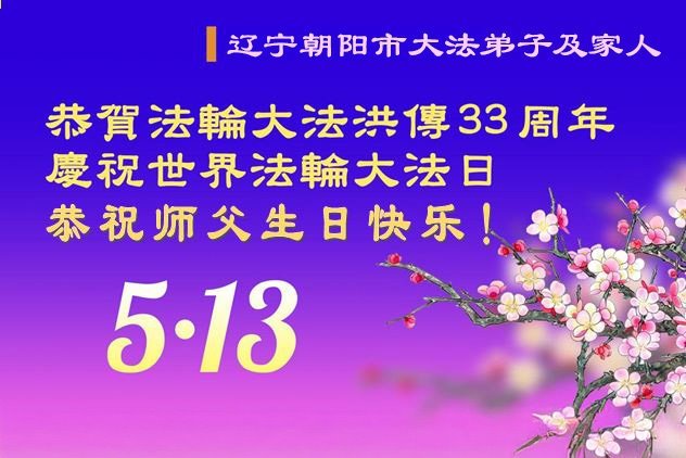 恭祝法轮大法洪传33周年!敬祝慈悲伟大师尊生日快乐! 辽宁省朝阳市一学法小组大法弟子敬上 二零二五年五月三日 辽宁省朝阳市北票一家大法弟子恭祝师父生日快乐!恭贺世界法轮大法日!