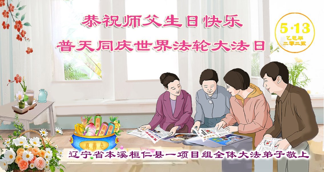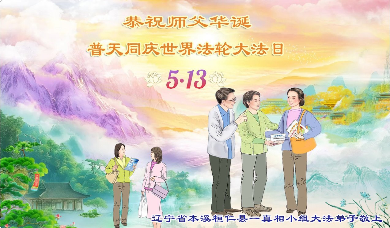 辽宁省本溪市讲真相小组大法弟子恭贺世界法轮大法日暨师尊华诞!