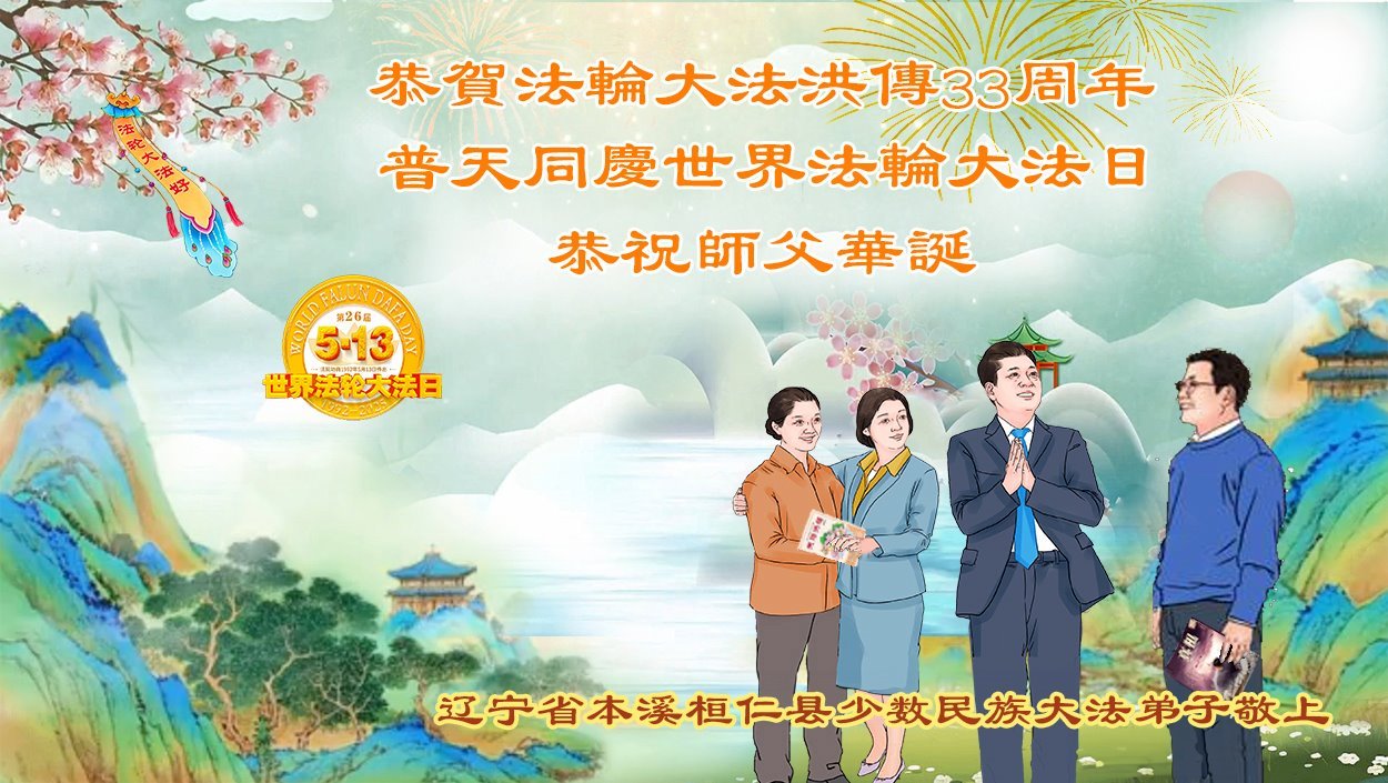 辽宁省本溪桓仁县真相小组大法弟子恭贺世界法轮大法日暨敬祝师尊华诞!
