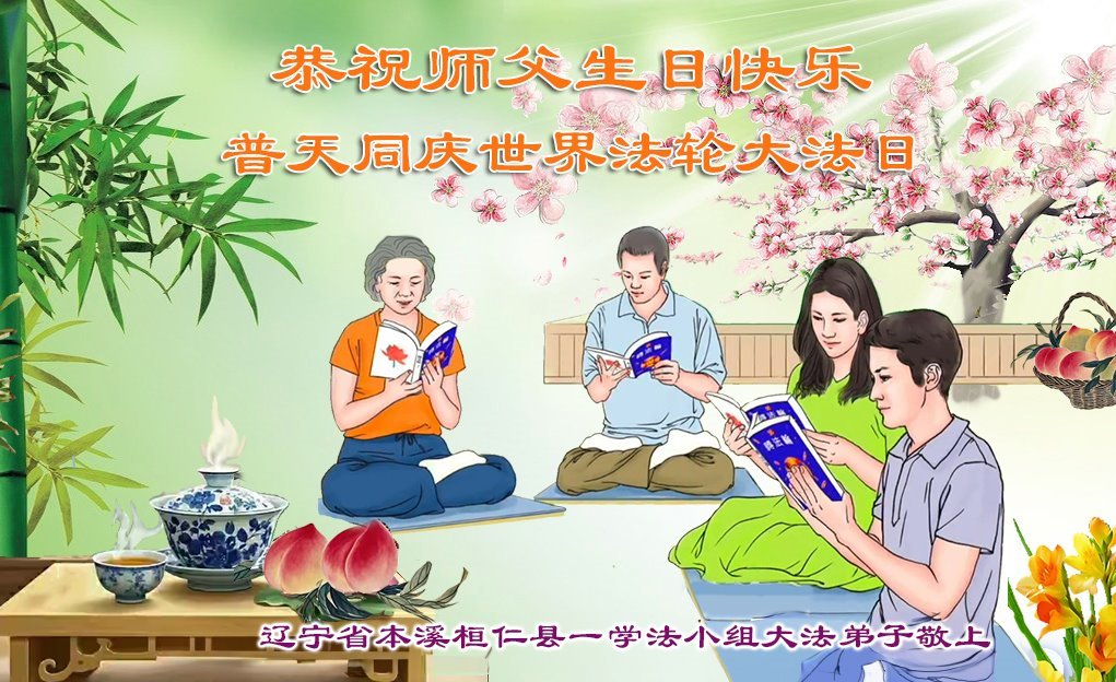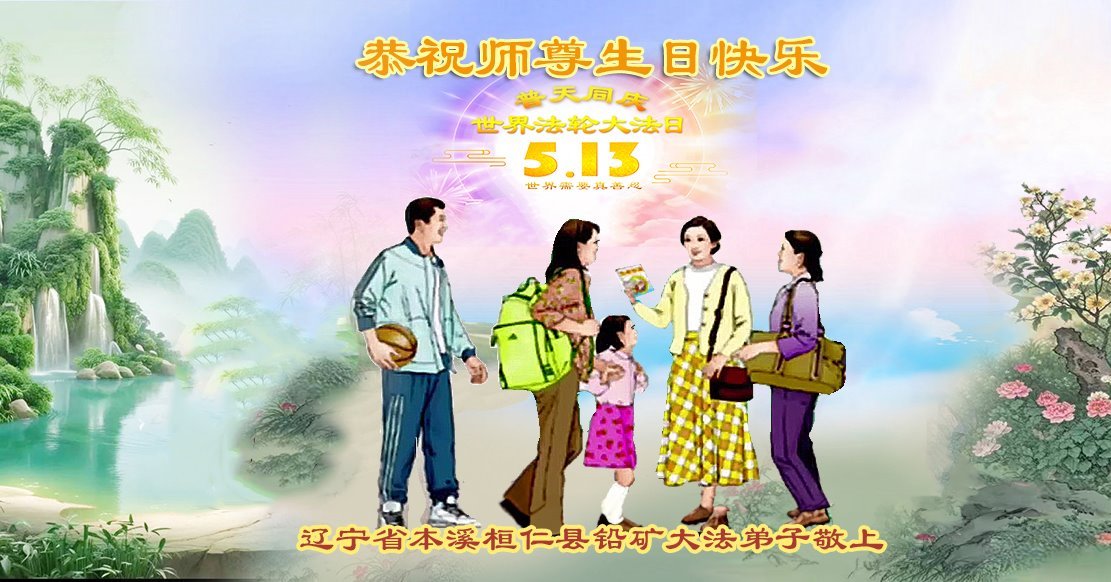 辽宁省本溪市一大法弟子家属恭贺世界法轮大法日!恭祝伟大的师父生日快乐!