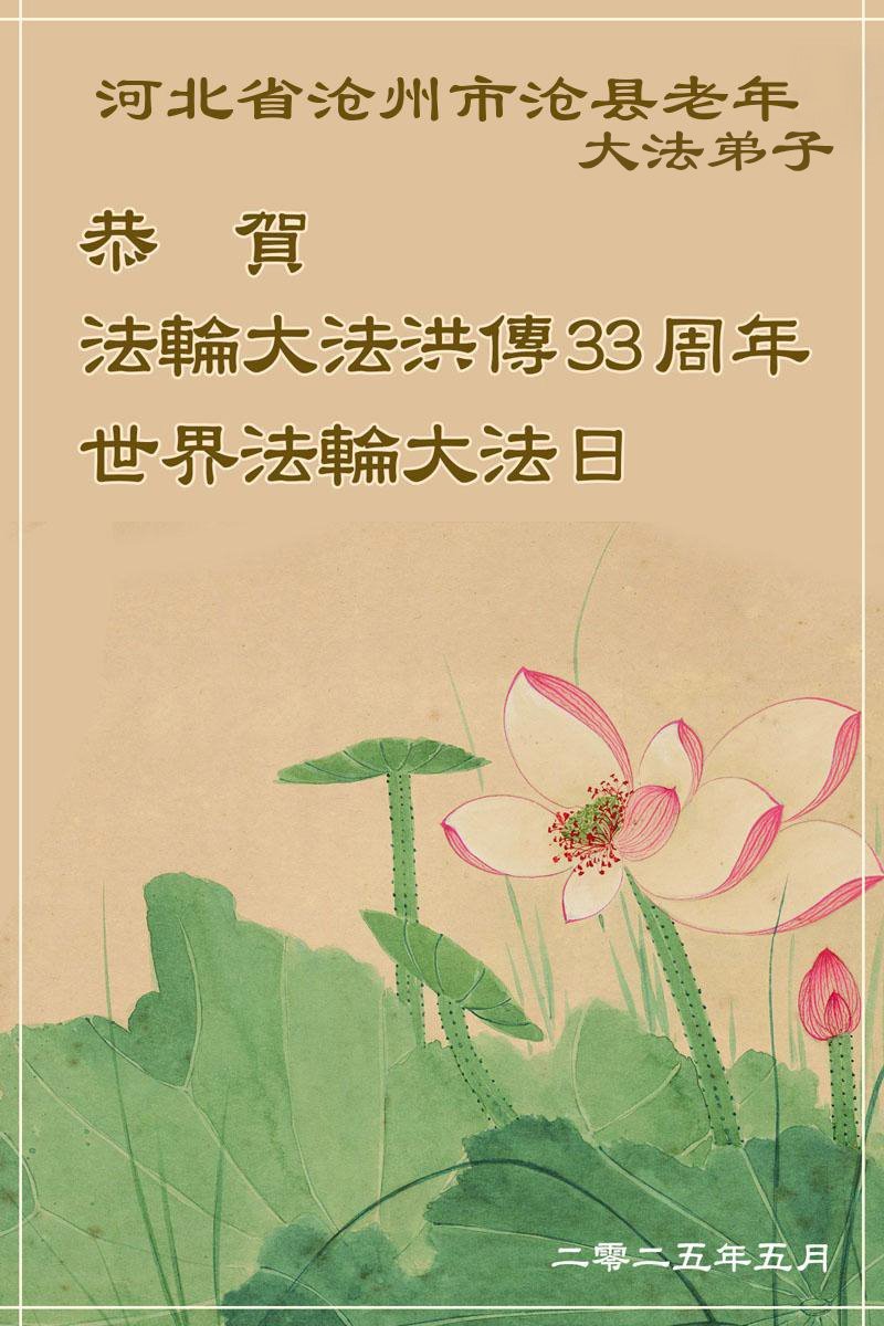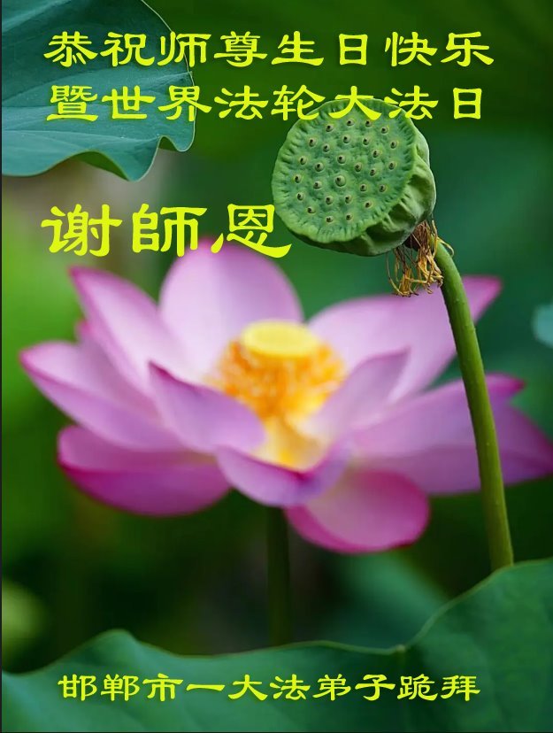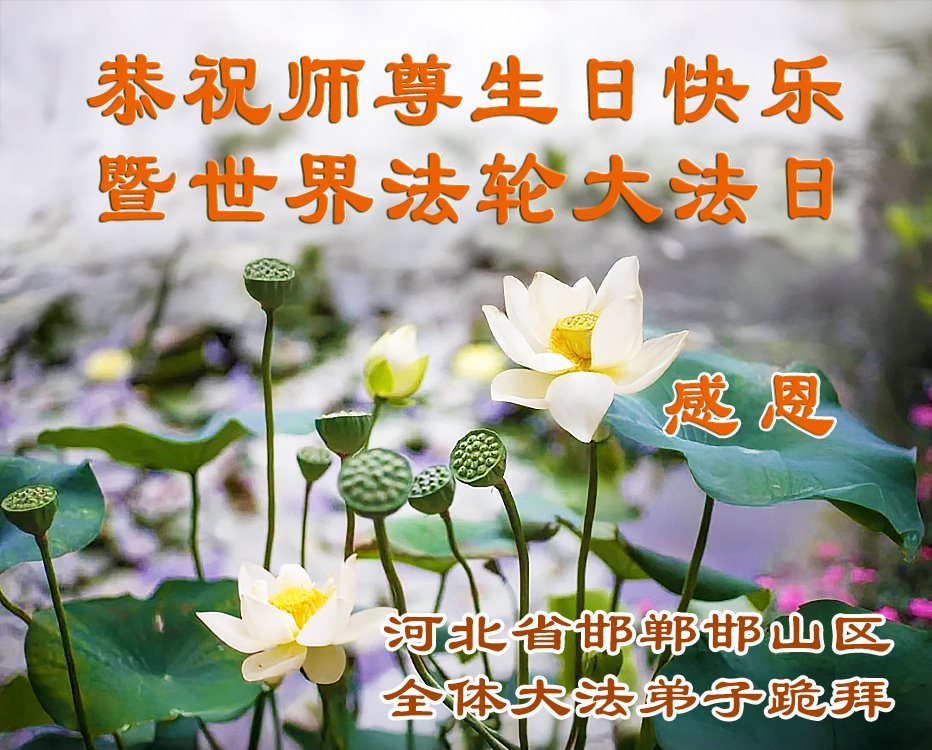 恭贺世界法轮大法日! 恭祝师尊生日快乐! 感恩师尊慈悲苦度! 河北邯郸市永年区一学法小组大法弟子敬上 河北省沧州市任丘市老年大法弟子恭贺世界法轮大法日暨师父生日快乐!