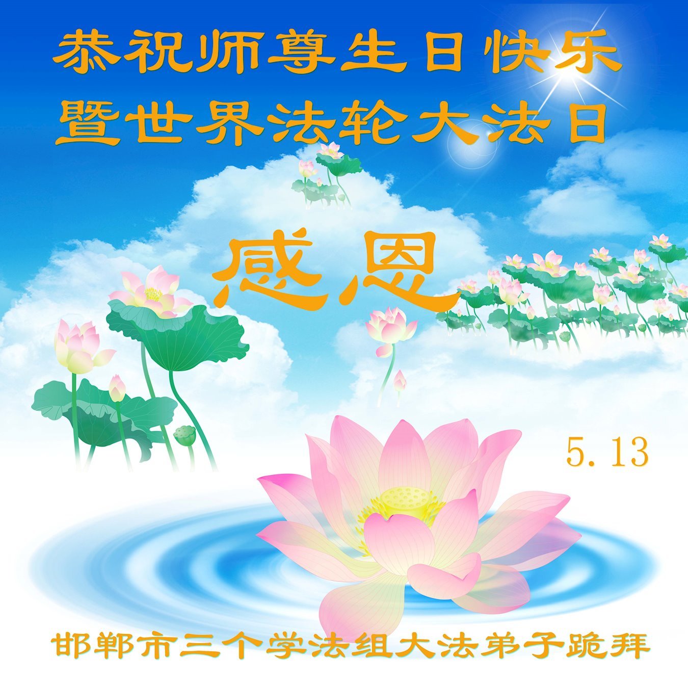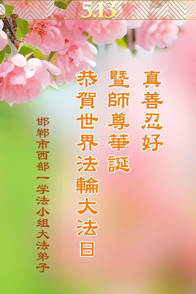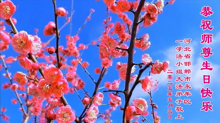 【明慧网二零二五年五月十二日】 河北省邯郸市曲周县大法弟子恭贺世界法轮大法日暨师尊生日快乐!