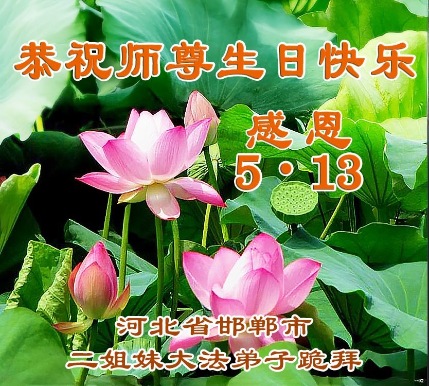 恭贺世界法轮大法日! 恭祝师尊生日快乐! 河北省邯郸丛台区大法弟子敬上 河北省邯郸姐妹俩大法弟子恭贺世界法轮大法日暨师尊生日快乐!