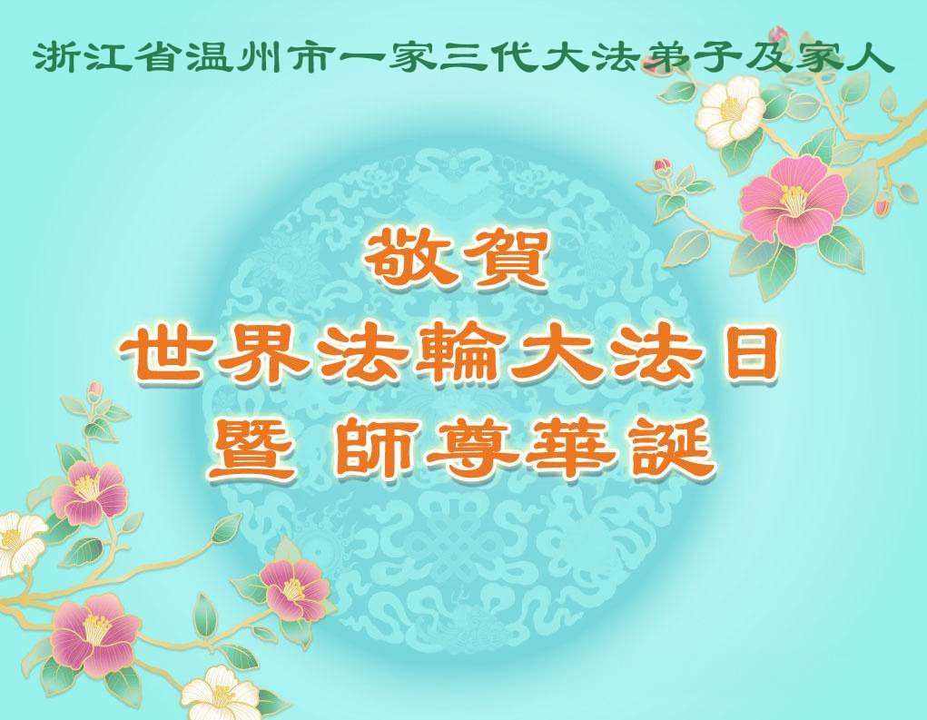 浙江省温州市一家三代弟子及家人恭贺世界法轮大法日暨敬祝师尊生日快乐!