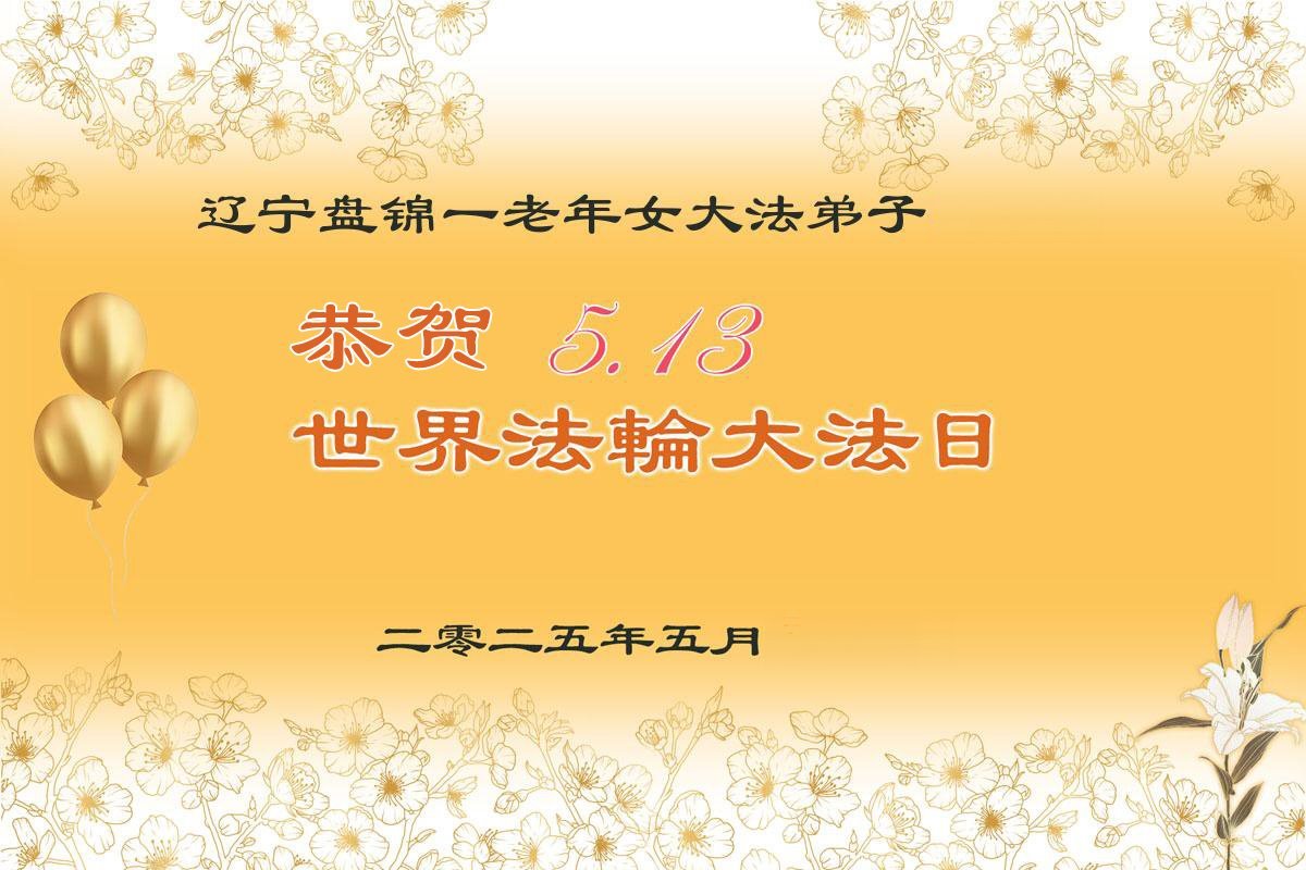 辽宁盘锦一老年大法弟子恭贺世界法轮大法日!