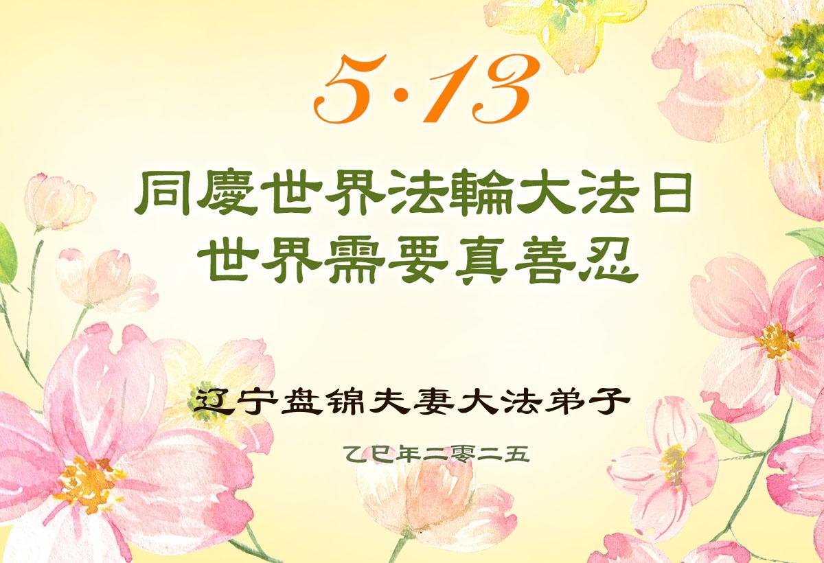 辽宁盘锦一中年大法弟子恭贺世界法轮大法日!