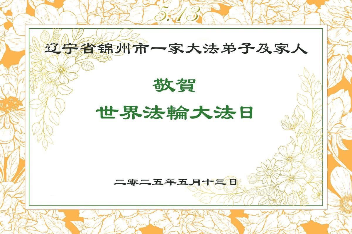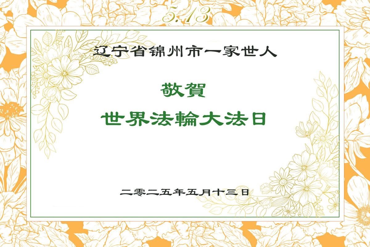 辽宁省锦州市一家大法弟子及家人敬贺世界法轮大法日!