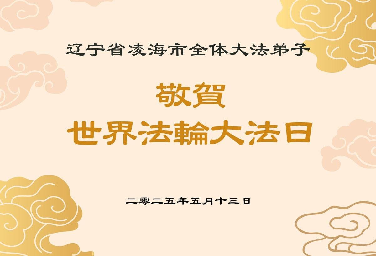 恭祝师尊生日快乐!庆祝世界法轮大法日!叩谢恩师! 辽宁省凌海大法弟子敬上 二零二五年五月四日 辽宁省锦州市凌海市大法弟子庆贺世界法轮大法日!恭祝师父生日快乐!