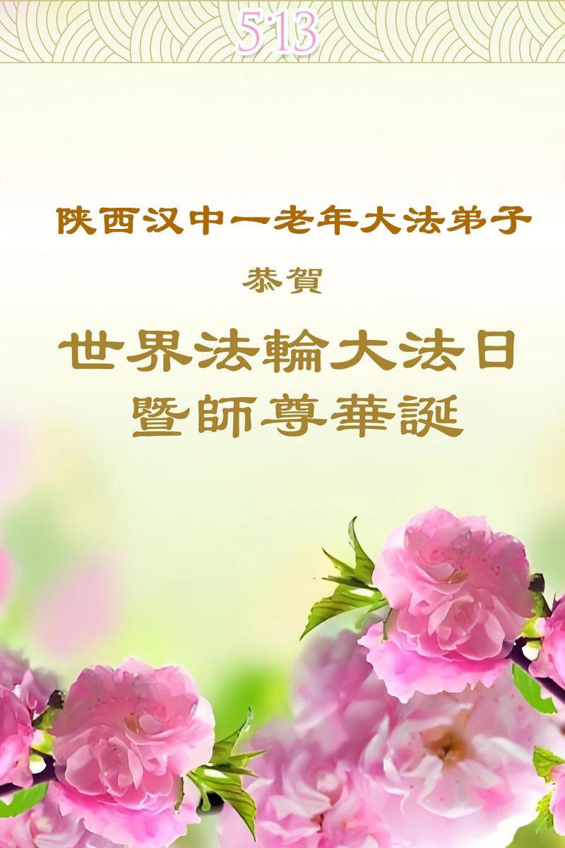 陕西省汉中一老年大法弟子恭贺世界法轮大法日暨敬祝师尊华诞!