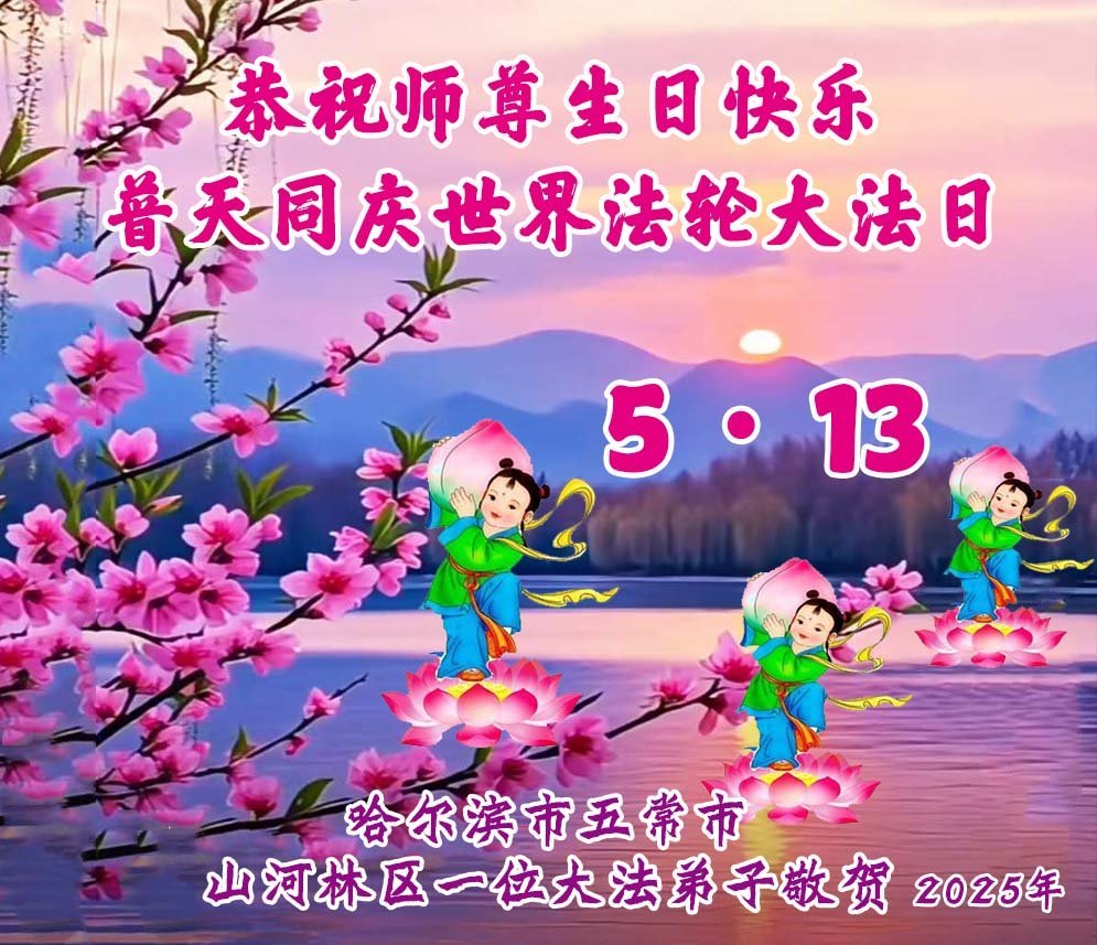 恭祝师尊生日快乐!感恩师尊救度之恩,弟子无以回报,只有精進实修,做好三件事,不辜负师尊苦度,圆满随师还。 黑龙江省双城区一大法弟子敬上 二零二五年五月八日 黑龙江省哈尔滨市五常市山河一位大法弟子恭贺世界法轮大法日暨敬祝师尊华诞!