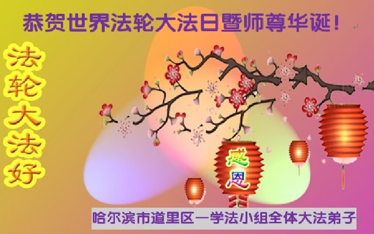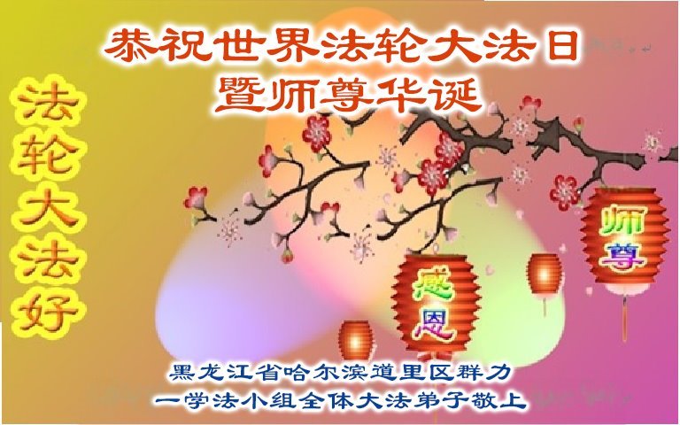 恭贺世界法轮大法日暨师尊华诞! 黑龙江省哈尔滨道里区一学法小组全体大法弟子敬上 黑龙江省哈尔滨市一学法小组大法弟子恭贺世界法轮大法日暨师尊华诞!