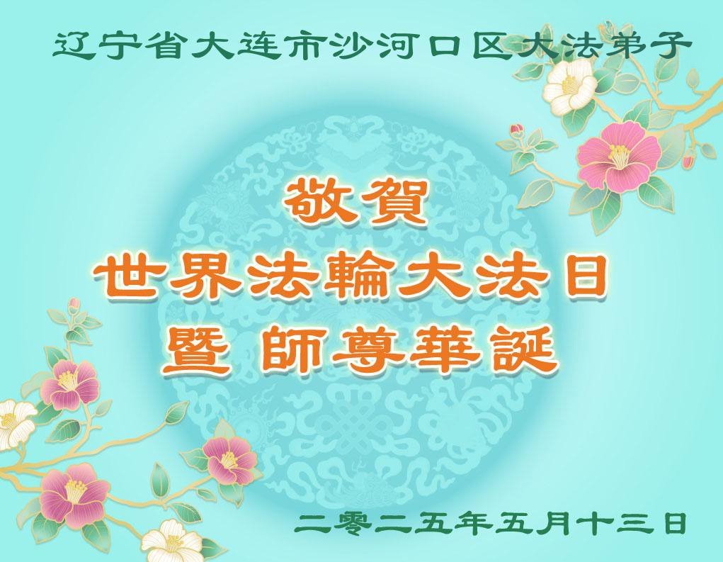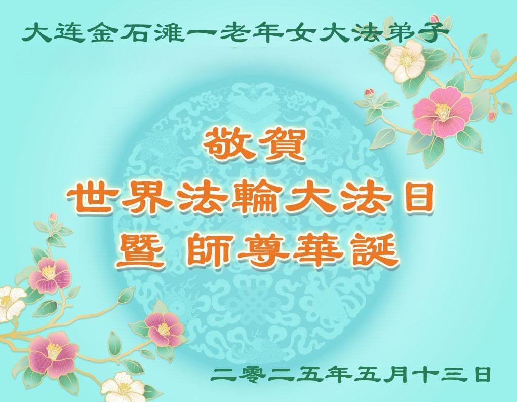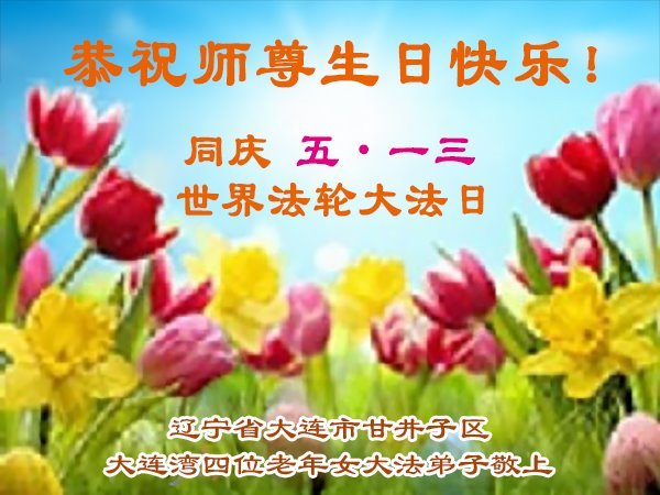 【明慧网二零二五年五月十二日】 辽宁省大连市甘井子区大连湾老年大法弟子恭祝师尊生日快乐!恭贺世界法轮大法日!