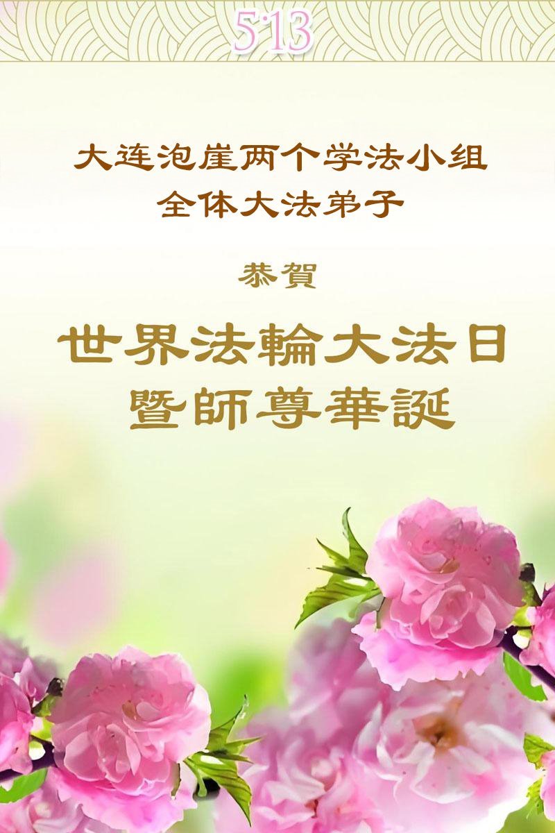 辽宁省大连市西岗区一学法小组大法弟子恭贺世界法轮大法日!