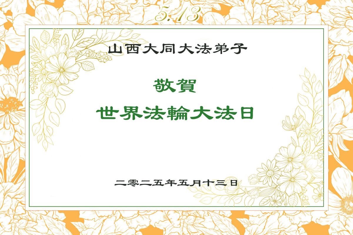 【明慧网二零二五年五月十二日】 山西省太原市大法弟子敬贺世界法轮大法日!