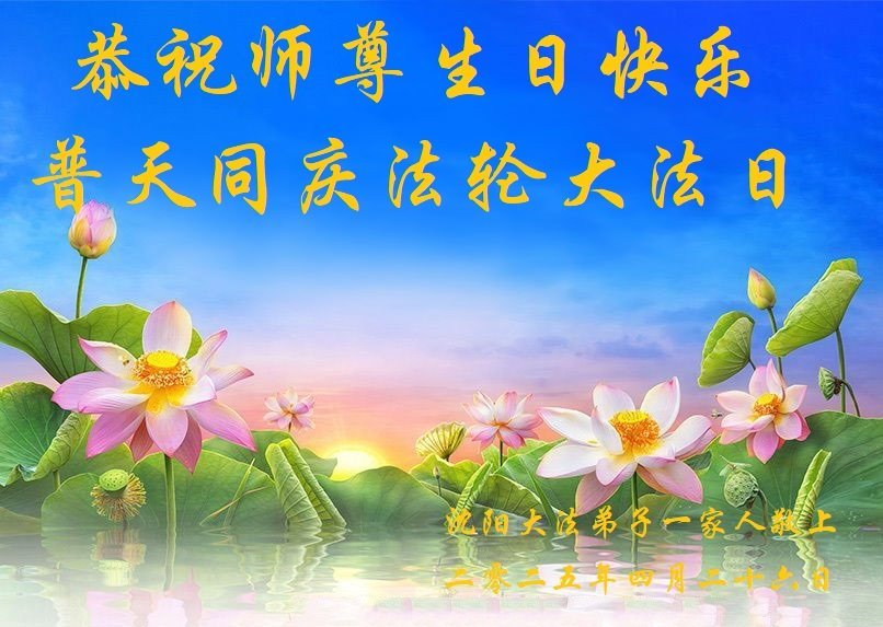 辽宁省沈阳市大法弟子恭贺世界法轮大法日!敬祝师尊生日快乐!