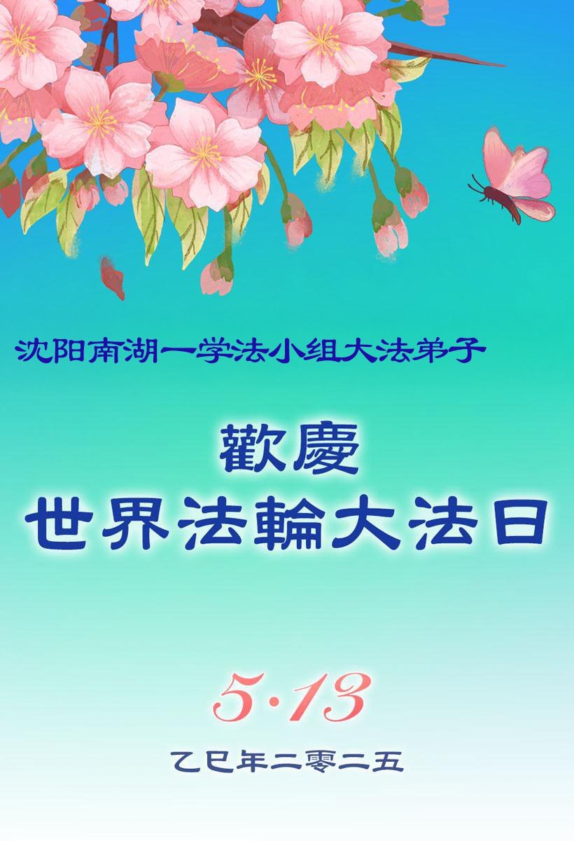 【明慧网二零二五年五月十二日】 辽宁省沈阳市皇姑三台子大法弟子恭贺世界法轮大法日!恭祝师尊华诞!
