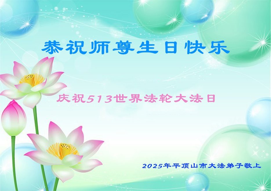 【明慧网二零二五年五月十二日】 河南省平顶山大法弟子恭祝师尊生日快乐!恭贺法轮大法日!