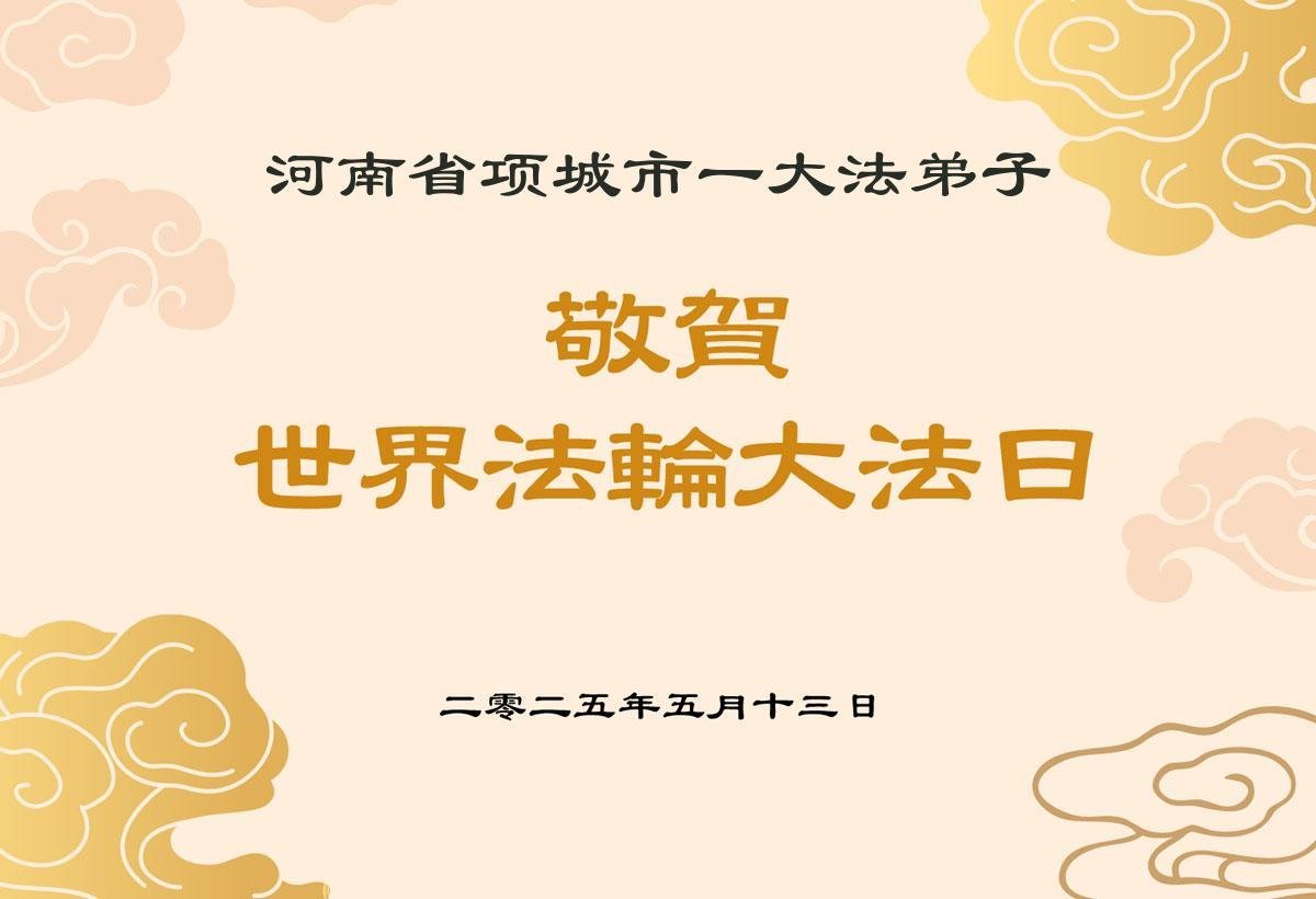 恭祝师尊生日快乐!法难当前,弟子只有做好该做的,让师尊少一份承受,少一份操劳,多一份欣慰。 河南省周口市项城市一大法弟子恭贺世界法轮大法日!