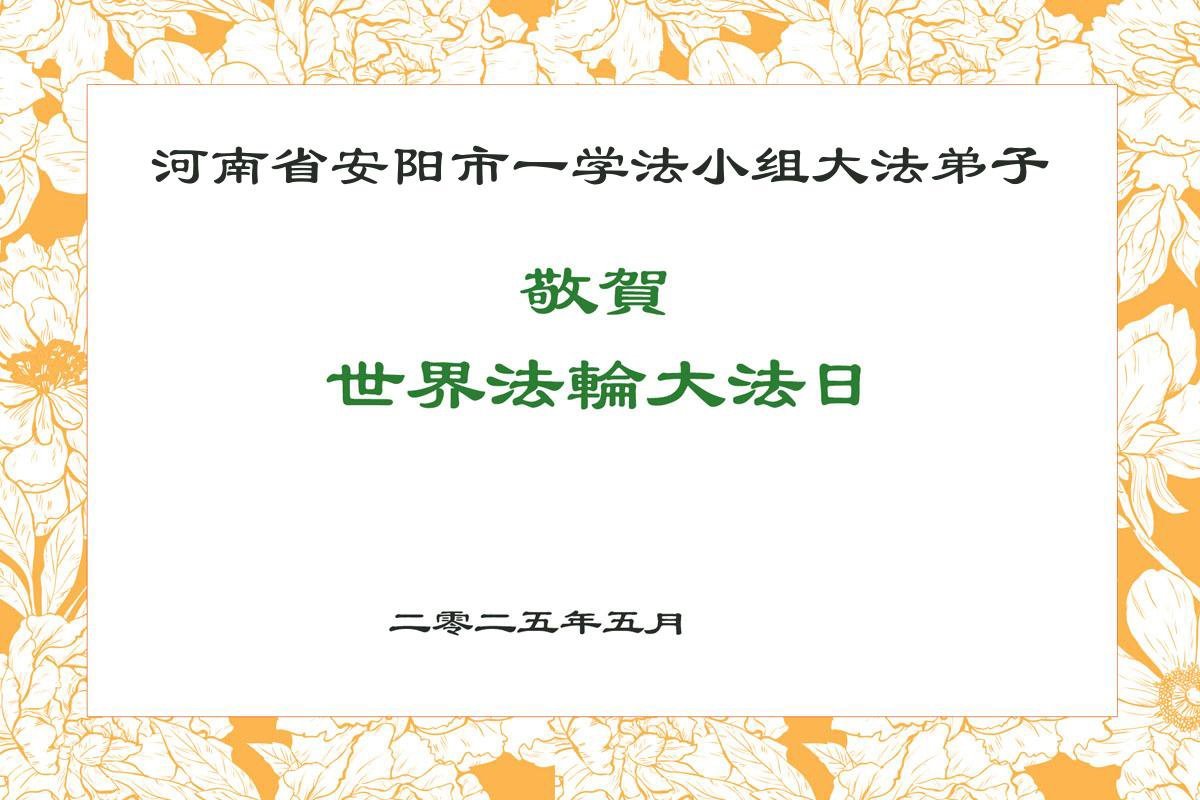 感恩师尊慈悲救度,佛恩浩荡,恭祝师尊生日快乐!恭贺世界法轮大法日! 河南省安阳市一学法小组大法弟子敬上 二零二五年五月八日 河南省周口市西华县大法弟子敬贺世界法轮大法日!