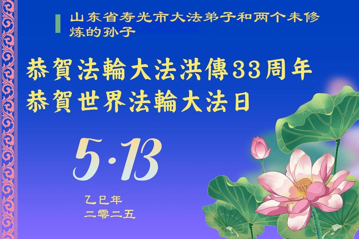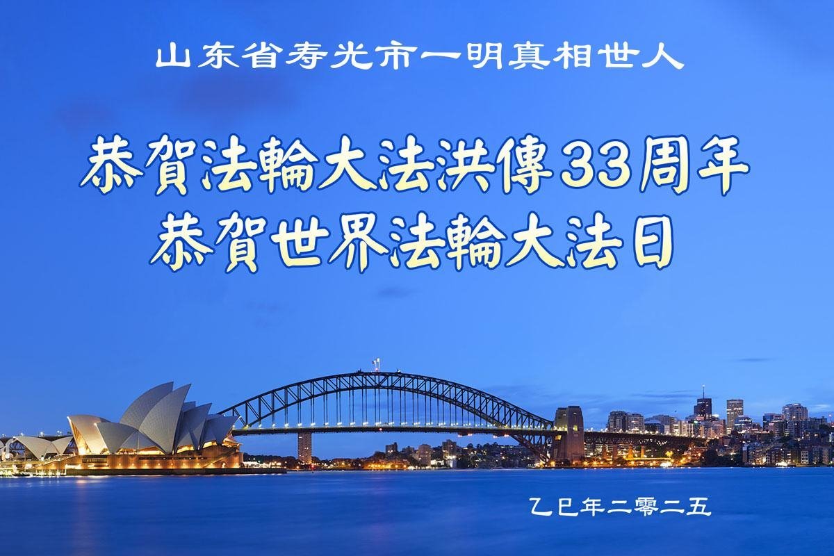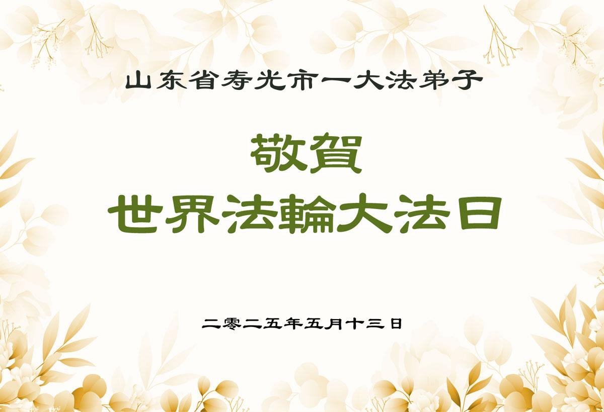 山东省潍坊市寿光市一大法弟子恭贺世界法轮大法日!