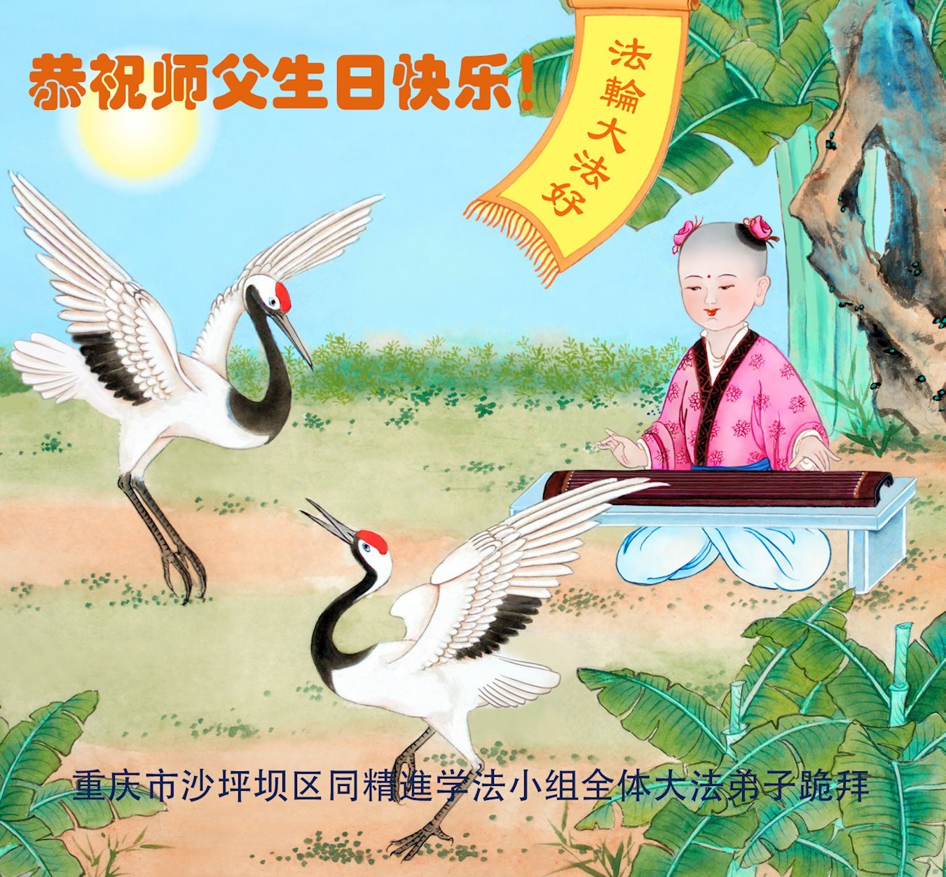 恭祝师尊生日快乐!暨世界法轮大法日! 时光过的好快啊,一年一度全球大法弟子的喜庆日子即将到来,我除了高兴更是感恩,感恩师尊的慈悲救度,感恩师尊的一路保护及慈悲点化,弟子唯有精進实修,尽力做好三件事,惟愿师尊笑,圆满随师还。 重庆一大法弟子敬上 二零二五年五月八日 重庆姐妹俩大法弟子恭贺世界法轮大法日暨敬祝慈悲伟大的师尊生日快乐!