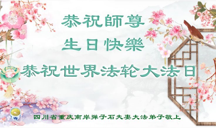 重庆市南岸弹子石一夫妻大法弟子恭贺世界法轮大法日暨师尊生日快乐!