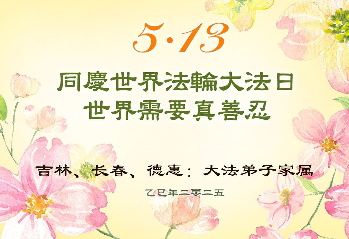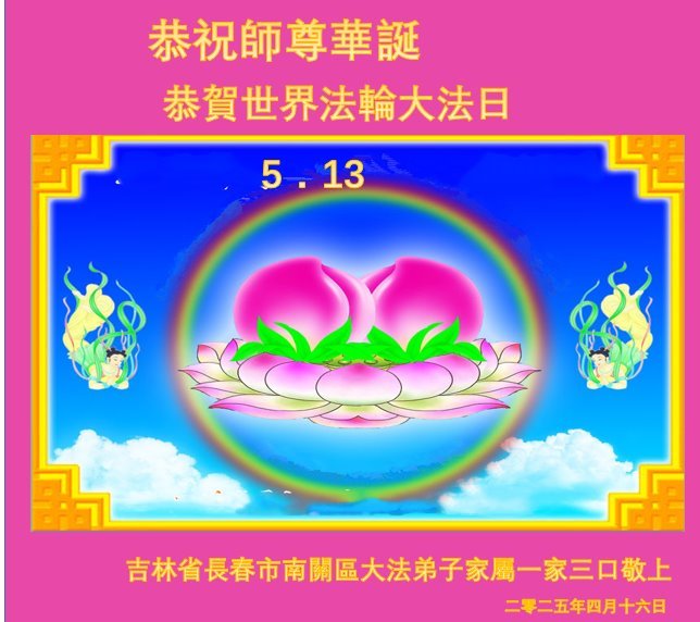 【明慧网二零二五年五月十二日】 吉林省长春市农安县一老年大法弟子全家恭贺世界法轮大法日暨师尊生日快乐!