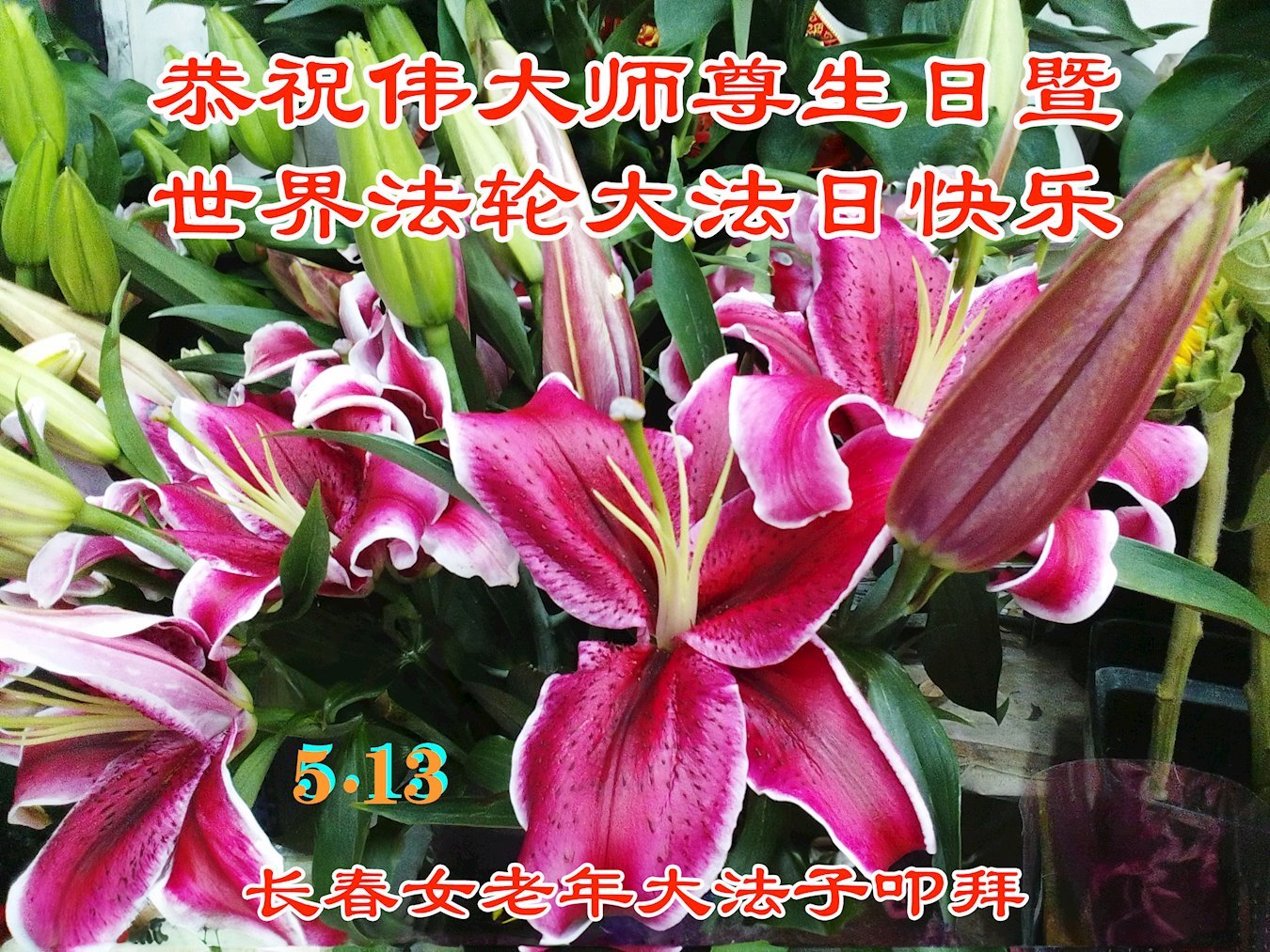 迎来了5.13世界法轮大法日及师尊华诞这个最神圣而又无比美好的日子。大法弟子代表家人及乡亲们感恩师尊无限慈悲众生!法轮大法好!真善忍好!恭祝师尊生日快乐! 吉林省长春市农安县一老年大法弟子敬上 吉林省长春市青年路一大法弟子恭祝师尊生日快乐!恭贺世界法轮大法日!