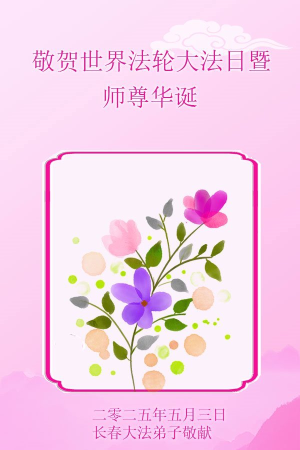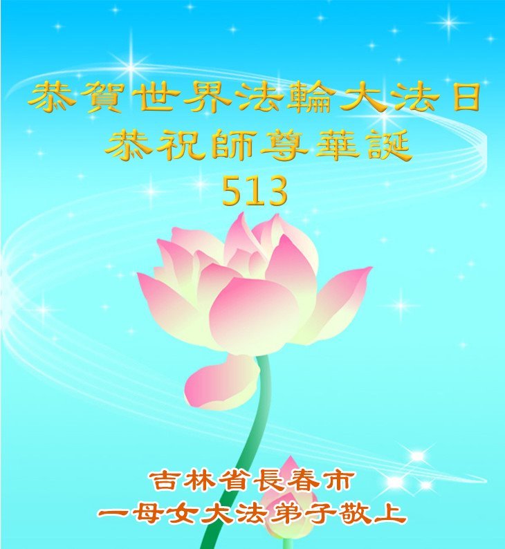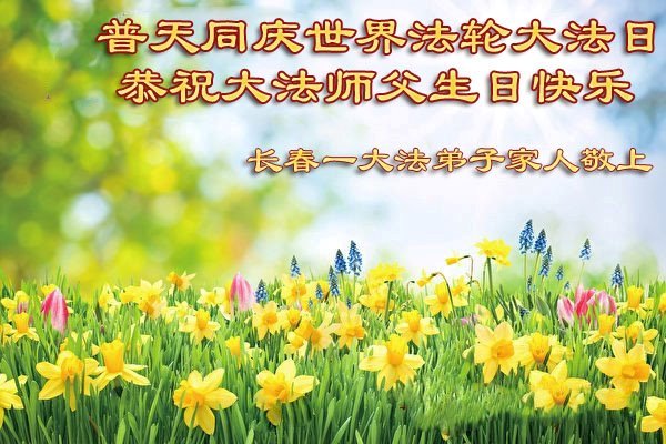 吉林省长春一大法弟子家人恭贺世界法轮大法日!恭祝师父生日快乐!