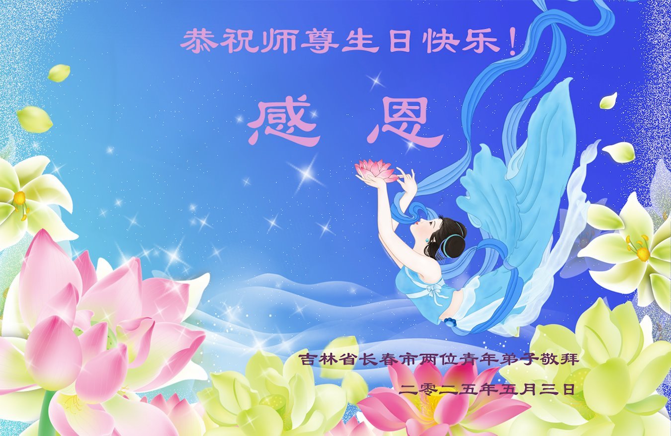 吉林省长春市两位青年大法弟子恭祝师父生日快乐!恭贺世界法轮大法日!