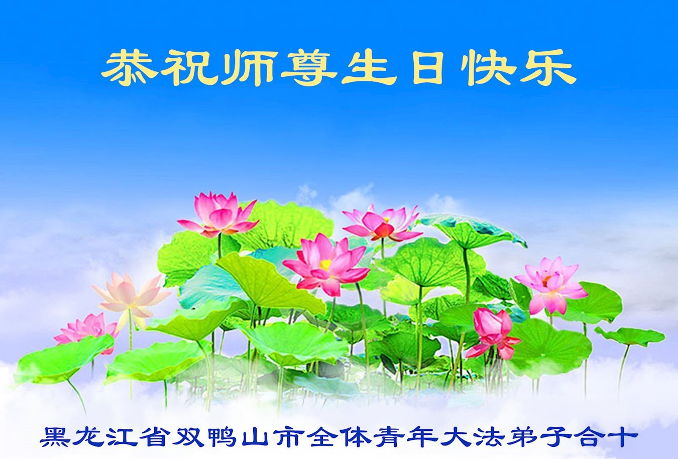 黑龙江省双鸭山市青年大法弟子庆贺世界法轮大法日!恭祝慈悲伟大的师尊生日快乐!