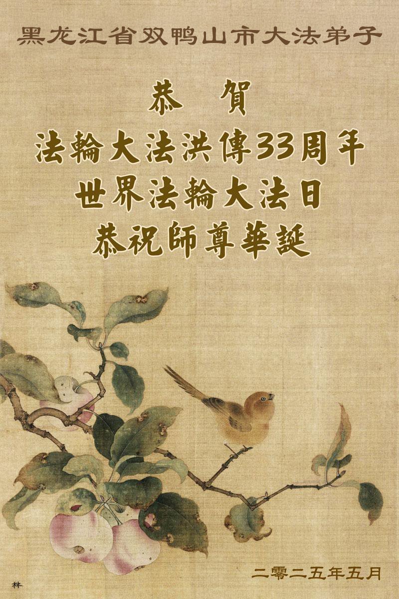 黑龙江省双鸭山市一老年大法弟子恭贺世界法轮大法日暨师尊华诞!