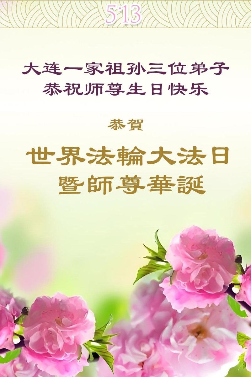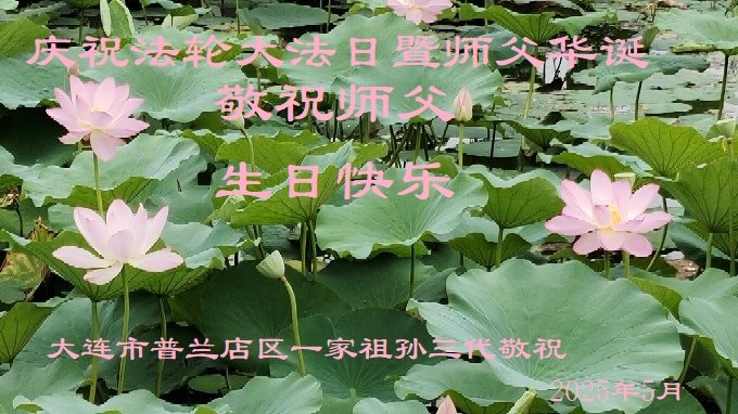 辽宁大连市一大法弟子全家恭祝师尊生日快乐!恭贺“五·一三”世界法轮大法日!