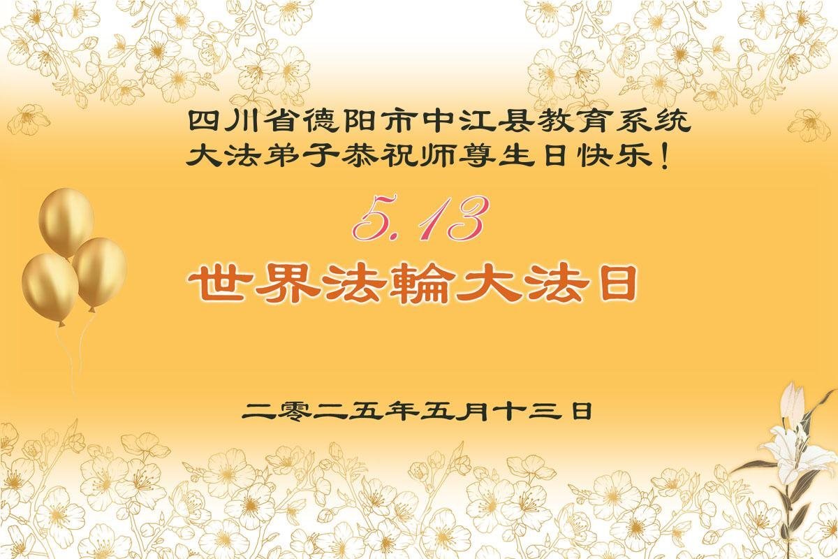 恭祝师尊生日快乐!恭贺世界法轮大法日! 师尊为度我们倾尽心血!师尊辛苦了!谢谢师尊的慈悲救度!弟子用尽人类的所有语言也无法表达师尊的救命之恩!弟子只有精進,做好三件事,才能让师尊少一点操劳! 山东省青岛市平度市教育界大法弟子敬上 二零二五年五月六日 四川省德阳市中江县教育系统大法弟子恭贺世界法轮大法日!恭祝慈悲伟大的师尊生日快乐!