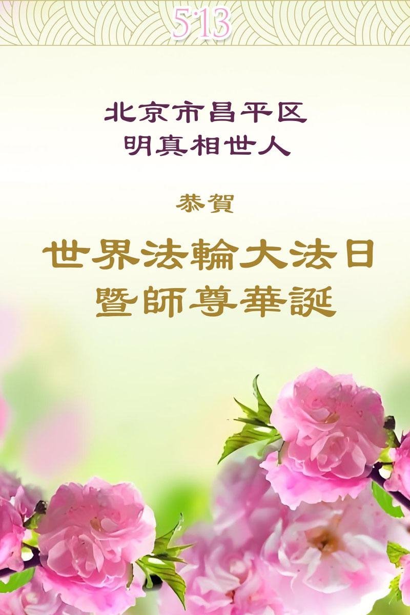 北京市昌平区明真相世人代表全家二人庆贺世界法轮大法日!敬祝师父生日快乐!