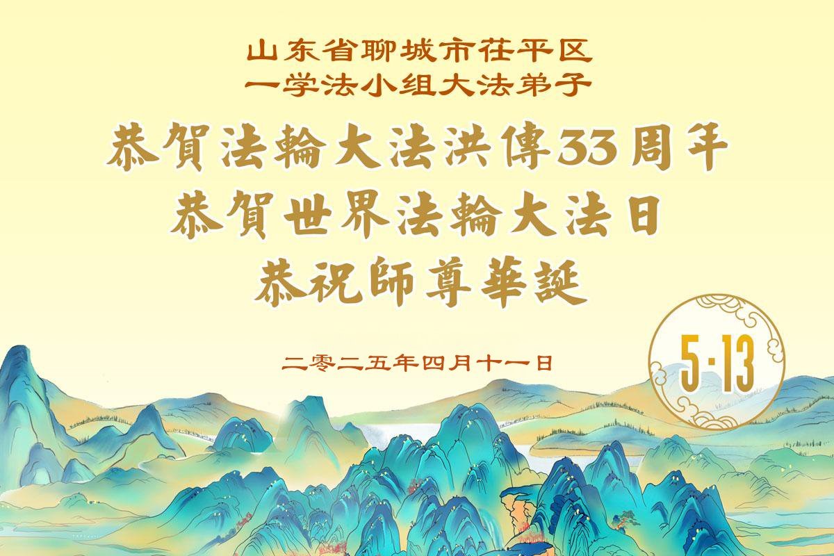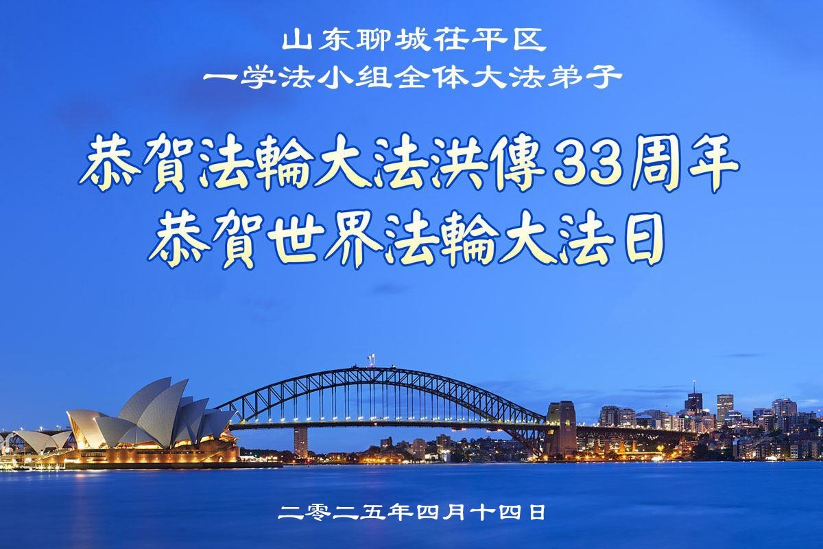 我们学法小组一定听师父的话多学法:“无论什么情况下都要以修炼人为标准,以法为重,用法衡量一切。”大法弟子的三件事一定要圆满完成,越到最后越要做好,不懈怠,不放松,不麻木。请师父放心!师父您辛苦了!我们想念您! 山东省烟台市牟平区一学法小组大法弟子敬上 二零二五年四月二十五日 山东省聊城市茌平区一学法小组大法弟子庆贺世界法轮大法日!恭祝慈悲伟大的师尊生日快乐!