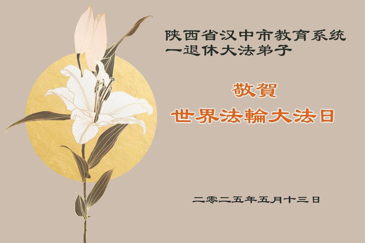 【明慧网二零二五年五月十二日】 陕西省汉中市教育系统大法弟子恭贺世界法轮大法日!恭祝师父生日快乐!