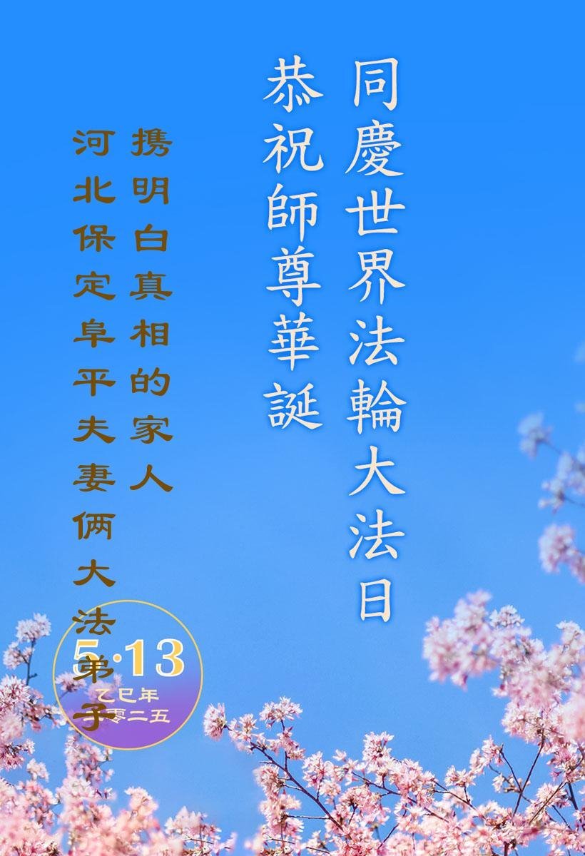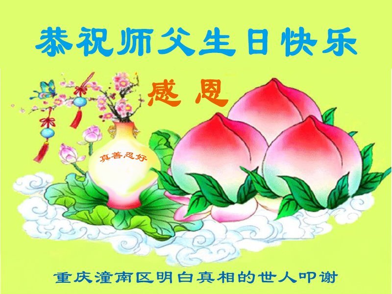 恭贺世界法轮大法日! 恭祝师父生日快乐! 师父辛苦了!感谢师父为我们操了很多心,感恩师父! 重庆市潼南区明白真相的世人敬上 河北省保定阜平夫妻俩大法弟子携明白真相的家人恭祝师尊生日快乐!恭贺世界法轮大法日!