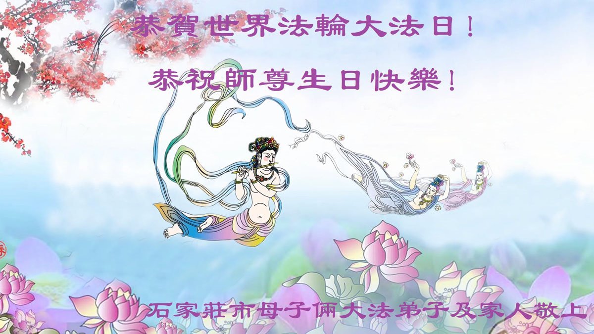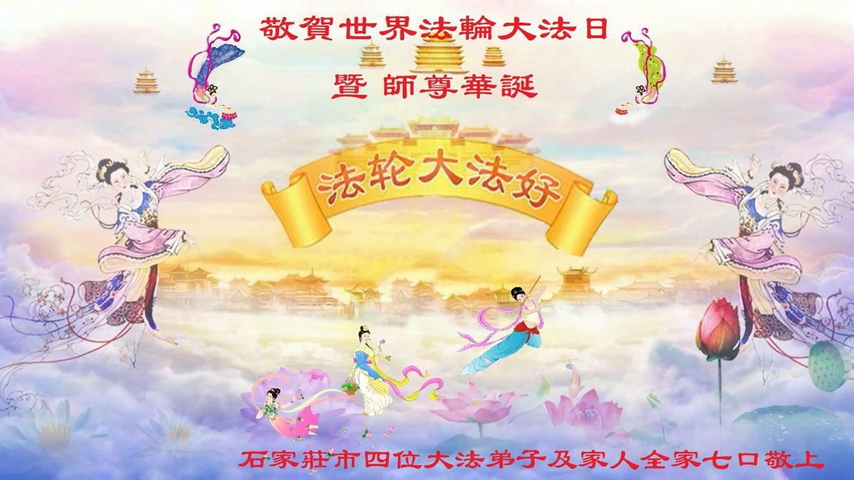 河北省石家庄市大法弟子三姐妹及妹夫恭贺世界法轮大法日暨师尊生日快乐!