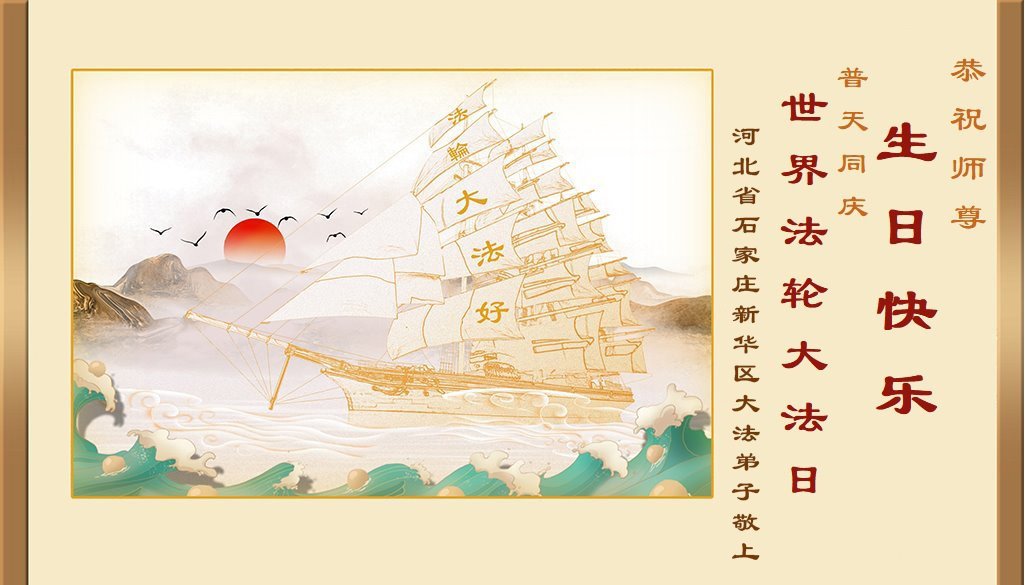 【明慧网二零二五年五月十二日】 河北省石家庄新华区大法弟子恭贺世界法轮大法日暨师尊生日快乐!
