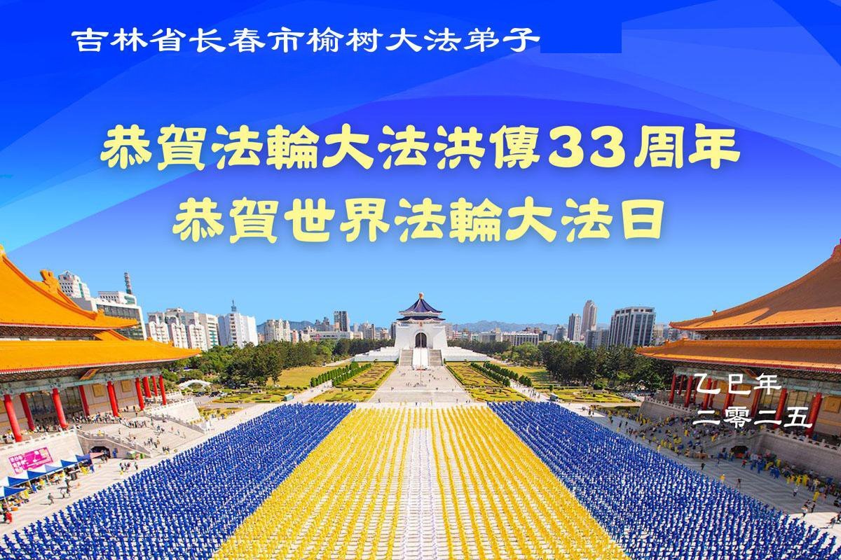 吉林省长春市榆树大法弟子同庆同颂法轮大法洪传33周年!恭祝伟大的师尊生日快乐!