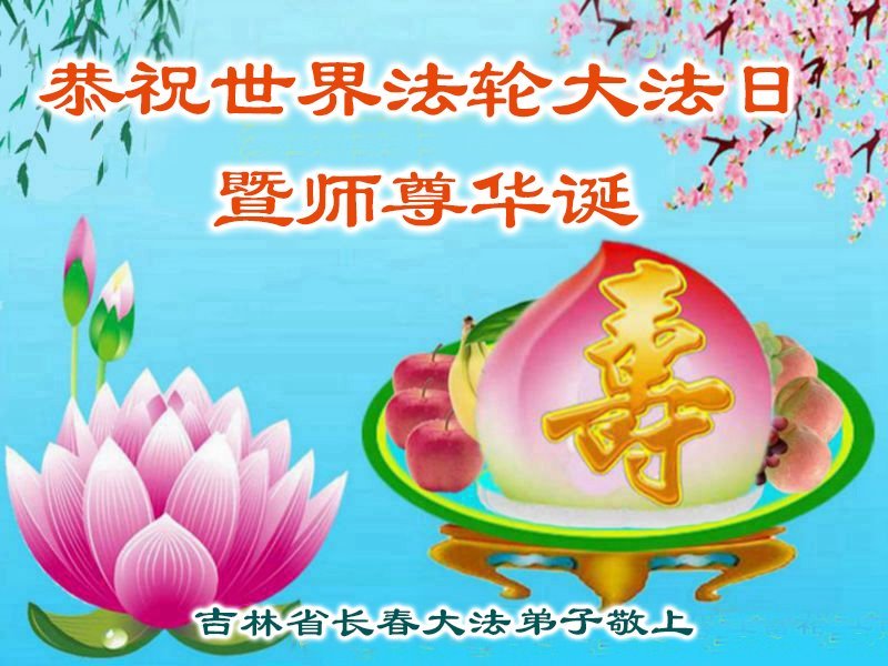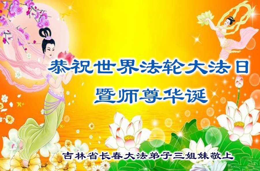 恭贺世界法轮大法日!恭祝师尊生日快乐! 吉林省长春市两个学法小组大法弟子敬上 吉林省长春市三姐妹及家人恭贺世界法轮大法日暨师尊生日快乐!