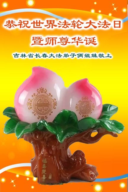 吉林省长春大法弟子俩姐妹恭贺五一三世界法轮大法日暨师尊生日快乐!